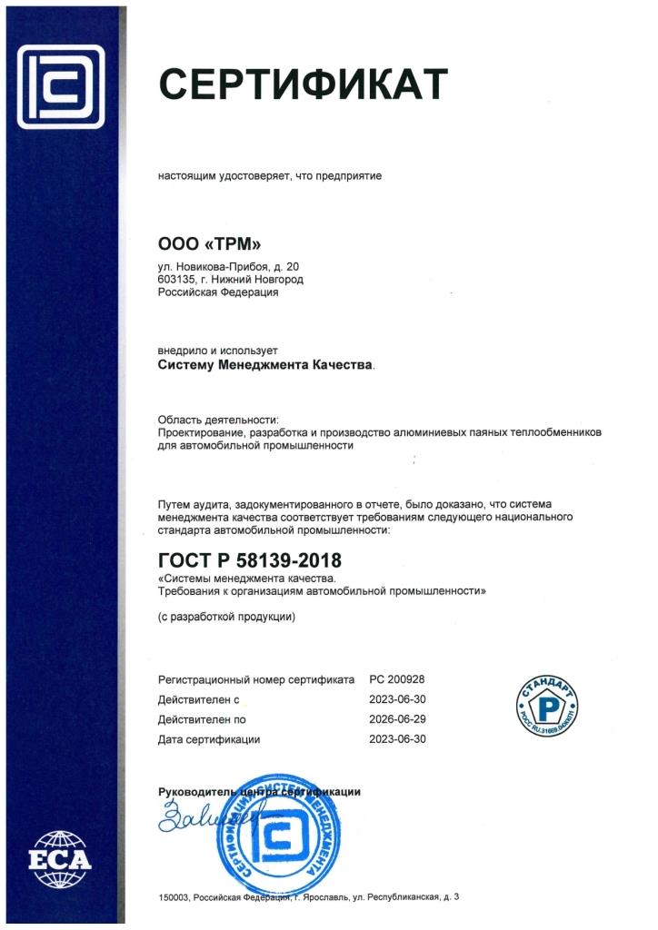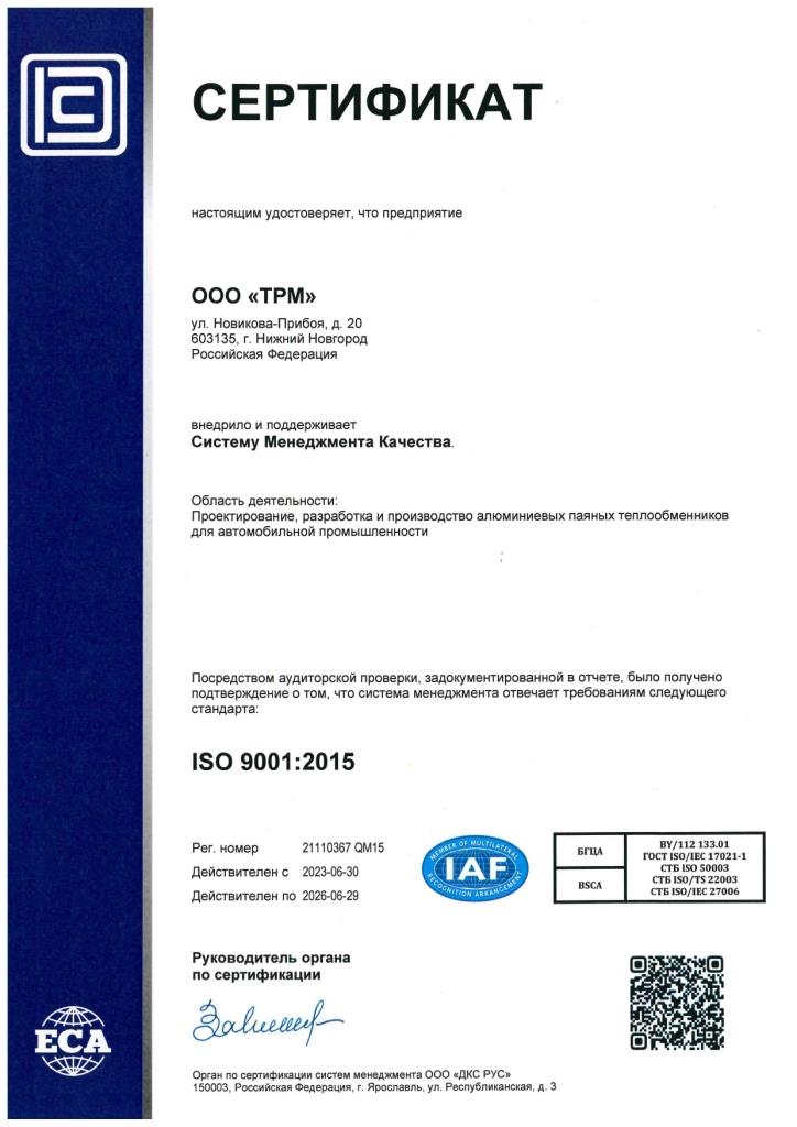 Главной целью ООО "ТРМ" в области качества является создание конкурентоспособной продукции, удовлетворяющей требованиям и ожиданиям Потребителя, интересам акционеров, поставщиков, сотрудников, путем постоянного улучшения качества и работы без ошибок во всем и на каждом рабочем месте.